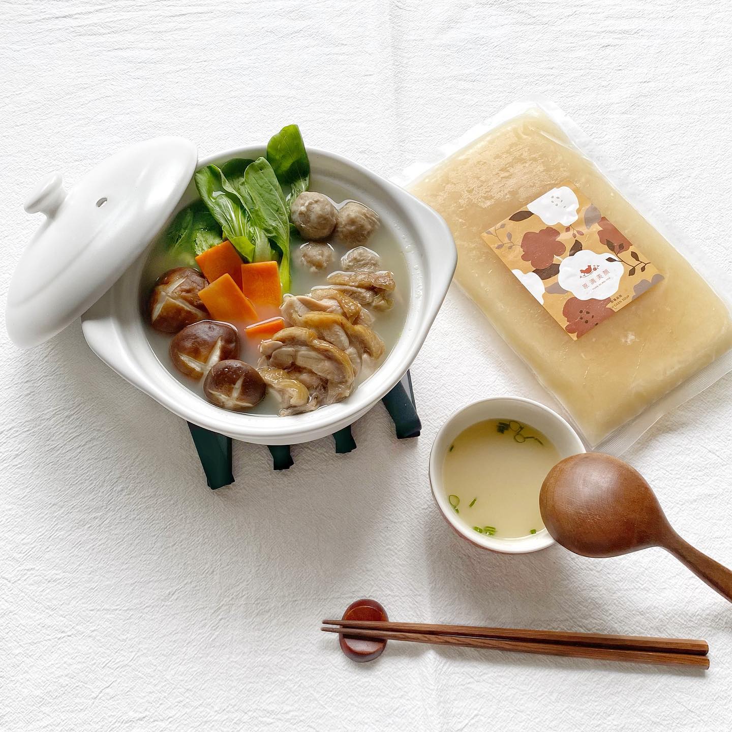 | 因為鮮雞高湯本身很單純,熬了14小時的湯口味濃郁,完全沒有腥味,搭配各種料理都很加分百搭呢! 除了今天的雞白湯鍋,感覺做為燉品、粥品或是湯麵的湯底都很好吃😋 |