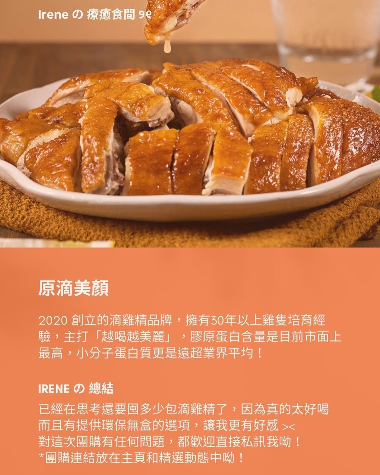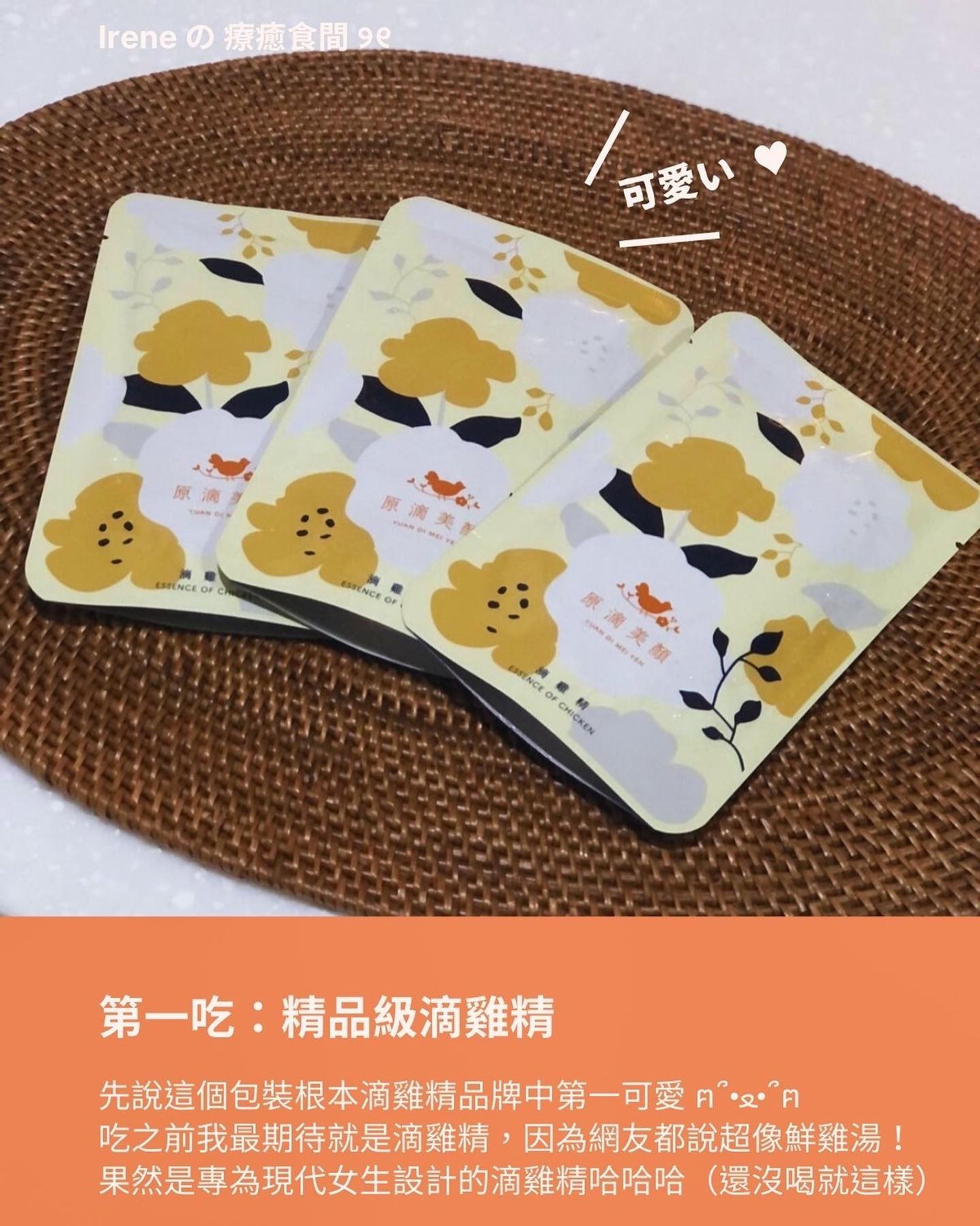 | ♡ 第一吃:精品級滴雞精 🥰包裝必須誇獎,根本滴雞精品牌中第一可愛 ฅ՞•ﻌ•՞ฅ 現在年紀大了看到膠原蛋白、養顏美容之類的關鍵字,都非常容易心動哈哈 原本很擔心很多膠質會太腥,結果超好喝的! 鮮甜味很濃郁又不失清爽,我喝過數一數二美味的滴雞精 因為我早上不喜歡吃太撐但是不吃又會不舒服 一早喝真的很適合我,整個胃都暖起來 😍 |