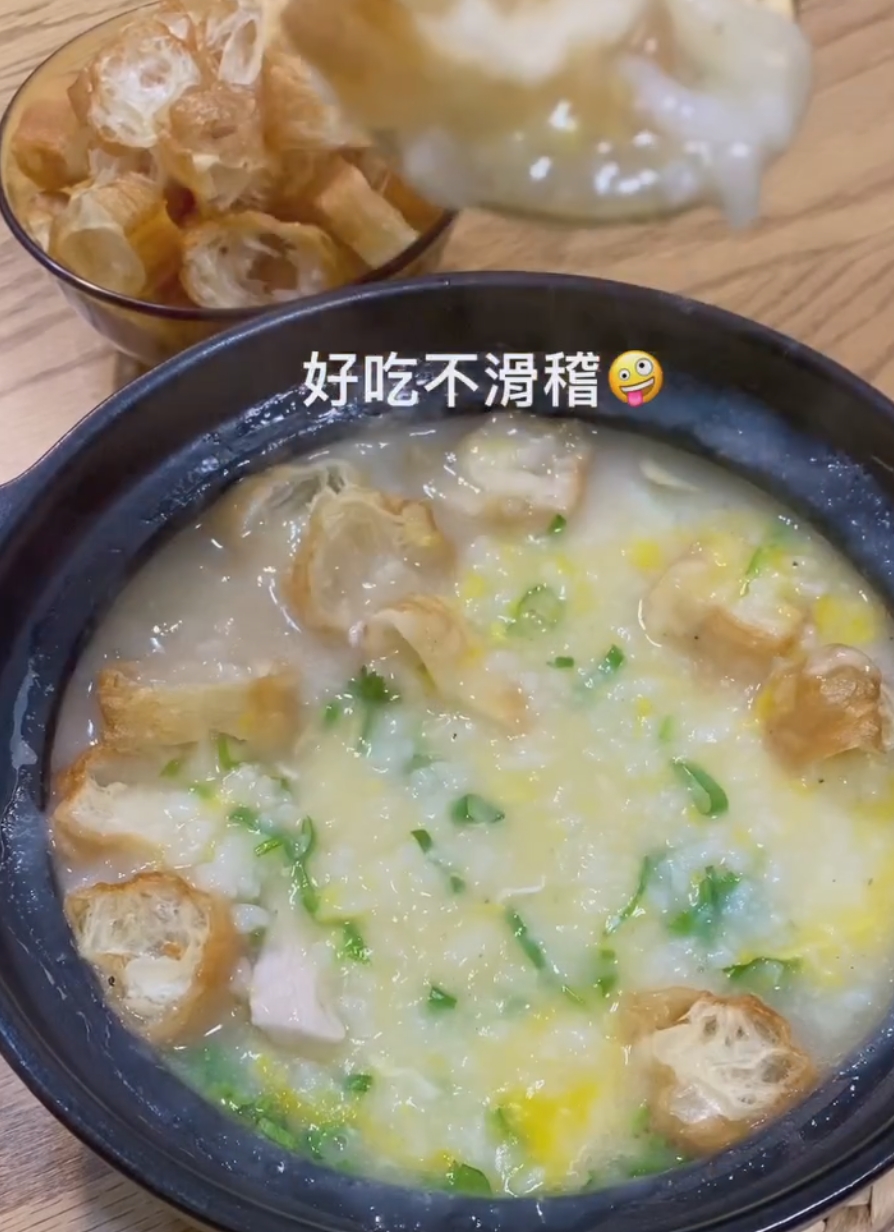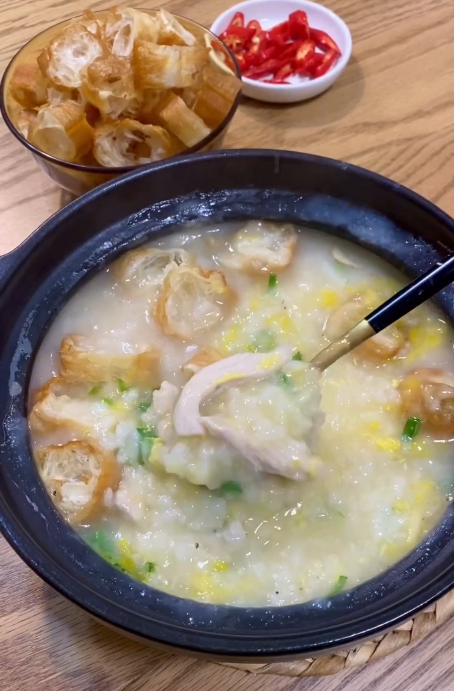 | 滑滑嫩嫩的雞粥,吸滿了雞高湯的精華與營養,估溜好吃不滑稽🤪 |